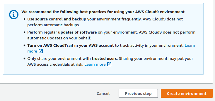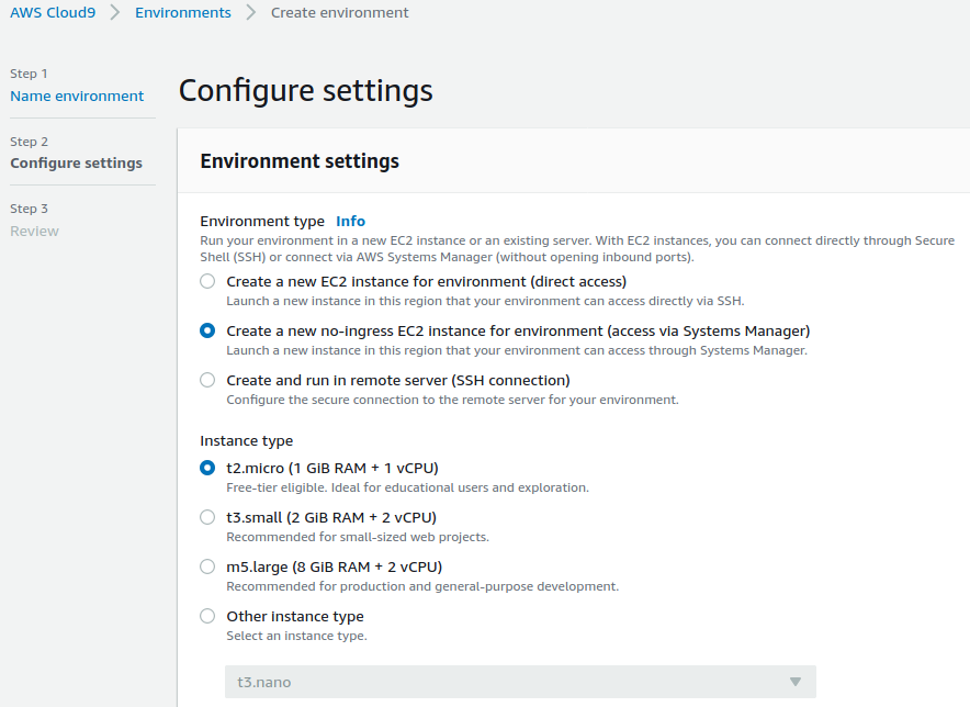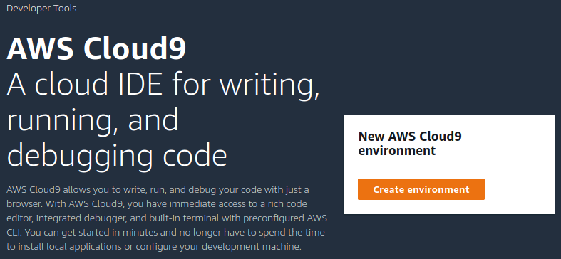 Start by launching a Cloud9 environment with an identifiable name and optional description in the region with your current workloads.