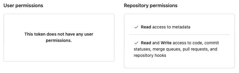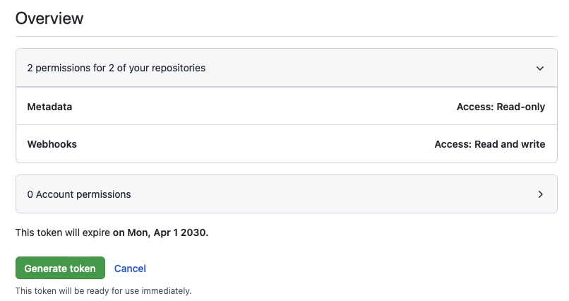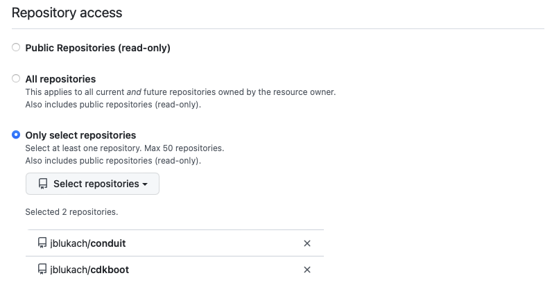 Initial CDK Pipeline setup only requires Metadata and Webhook permissions.