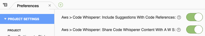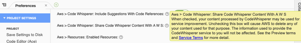Win, I can choose not to share with CodeWhisperer for service improvement.