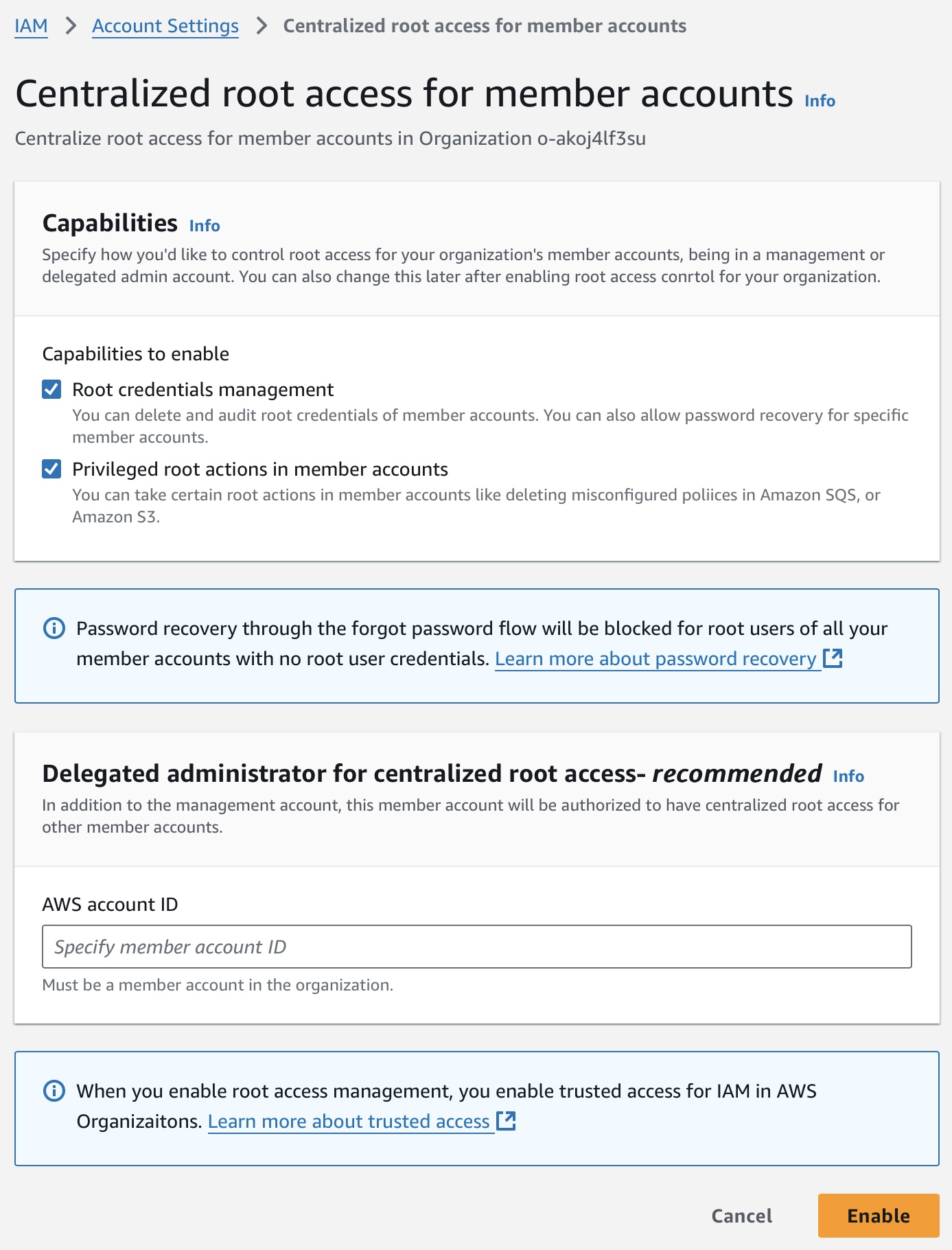 Guard Rail in Control Tower environments prevents the usage of Root Access Management until disabled.