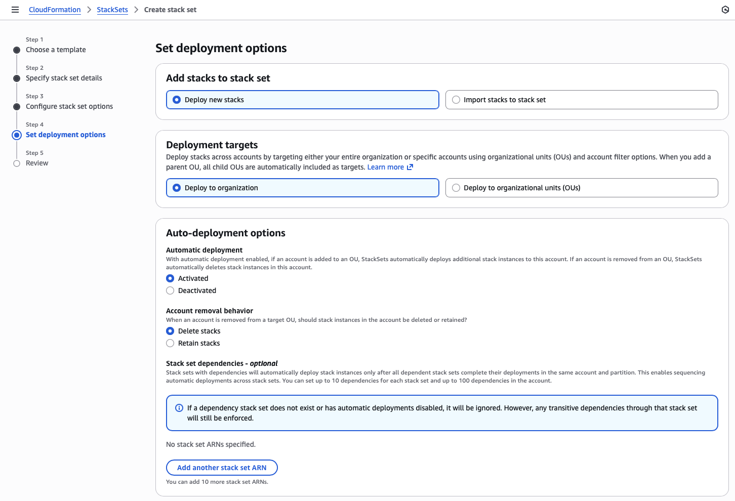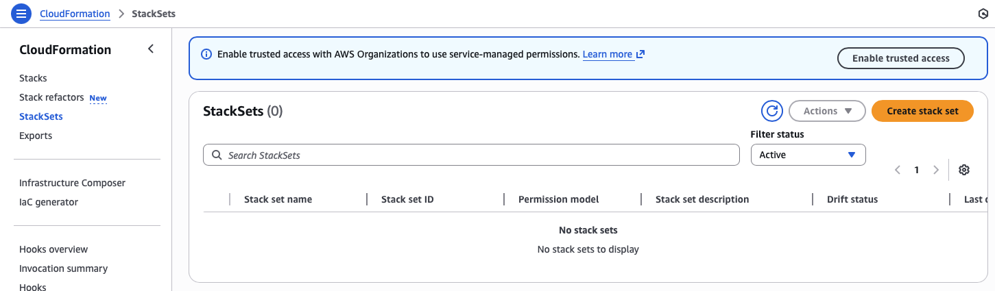 Now I can set up a Service-Managed StackSet that handles the IAM permissions.