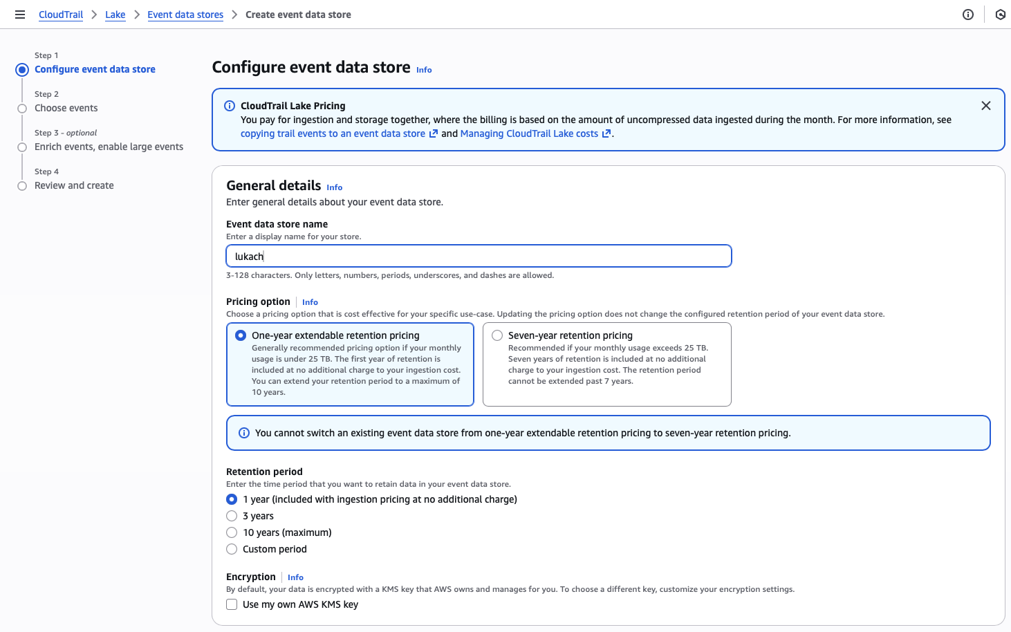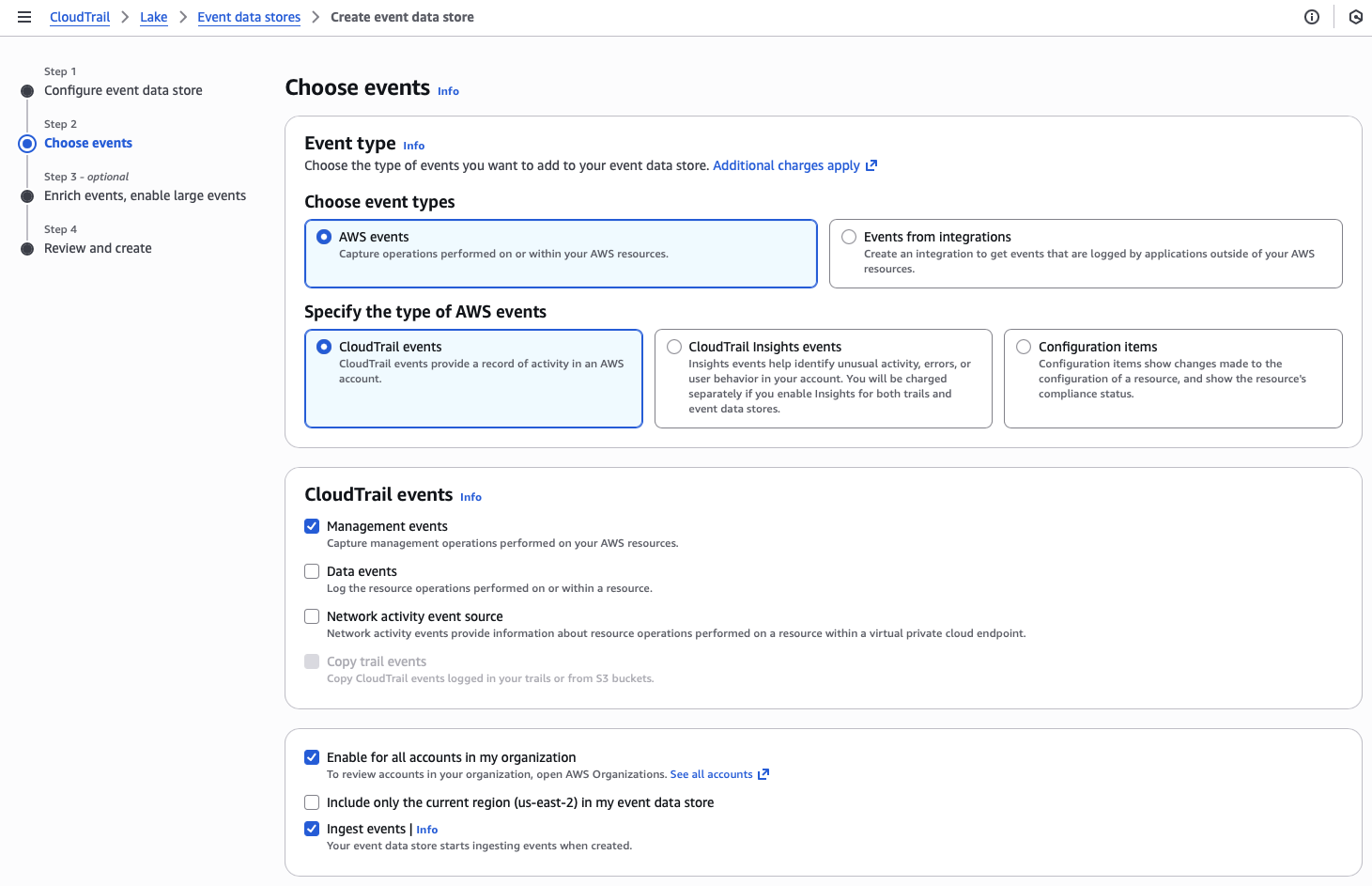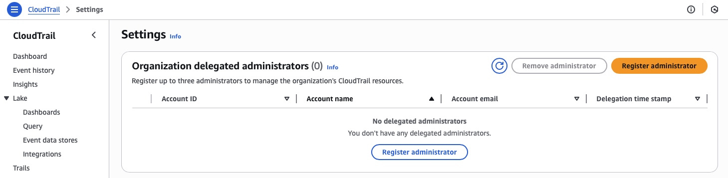 Switch to the delegated administrator account to start configuring the CloudTrail Lake.