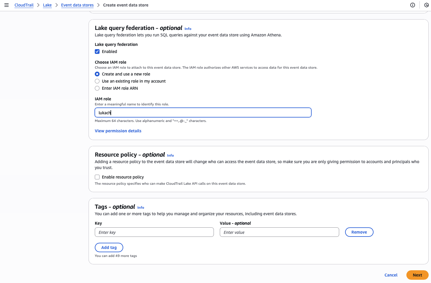 tags: aws - cloudtrail - lake - logs