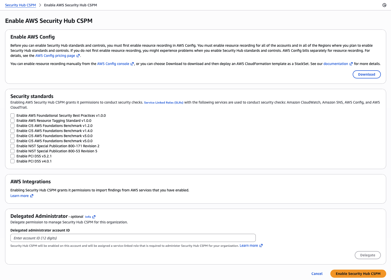Security Hub is notorious for automatically enabling security standards that I prefer to be disabled by default. AWS Config is a dependency for security standards evaluations.