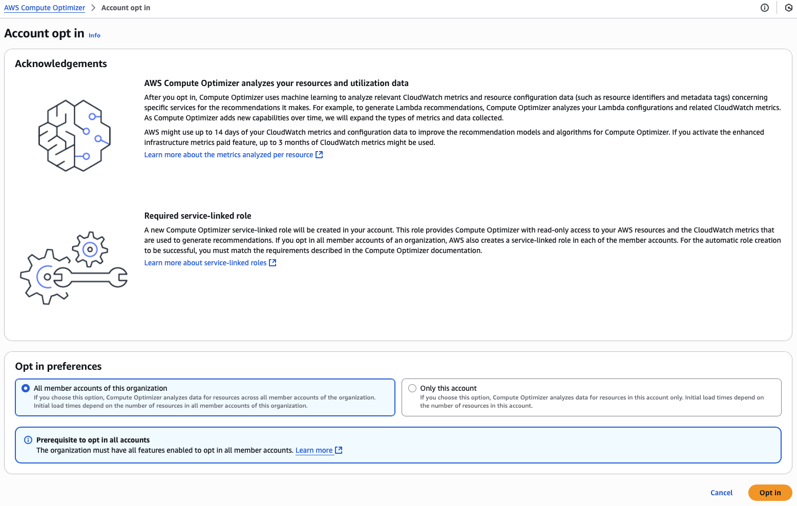 The UI should have taken me to the AWS Compute Optimizer as the initial setup step.