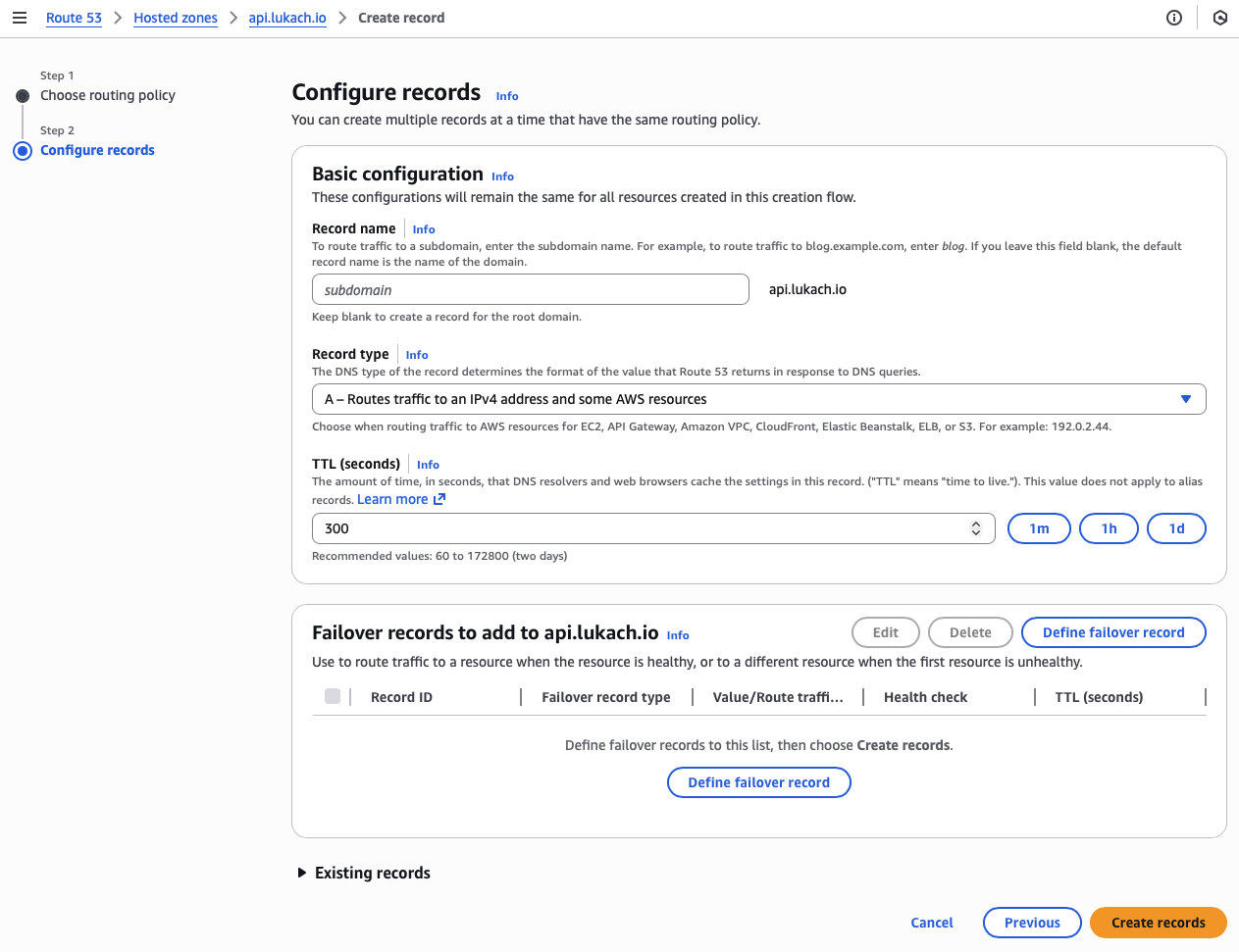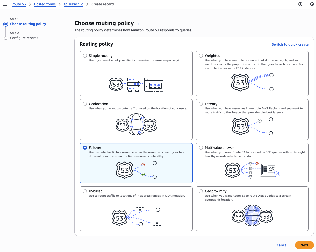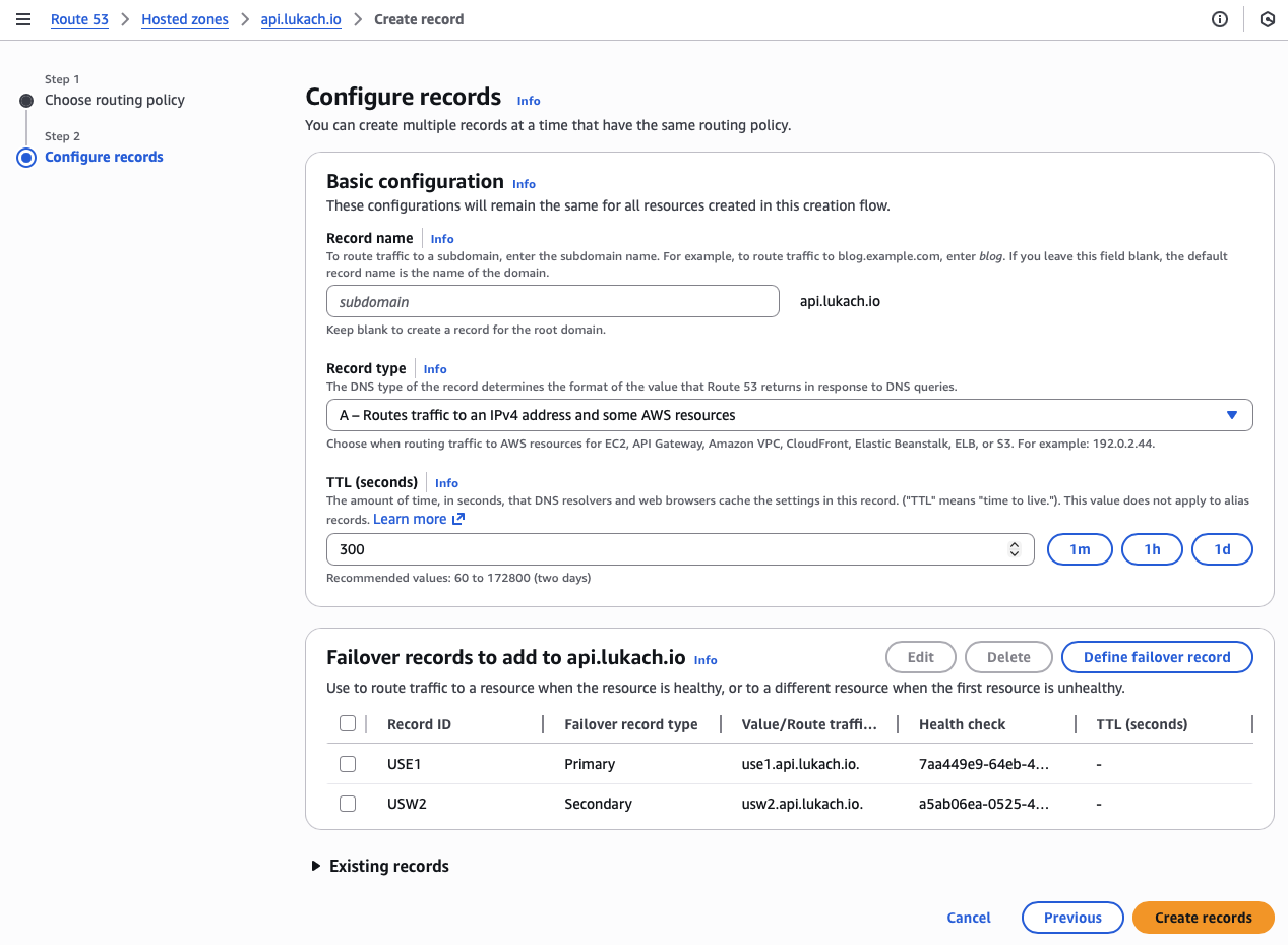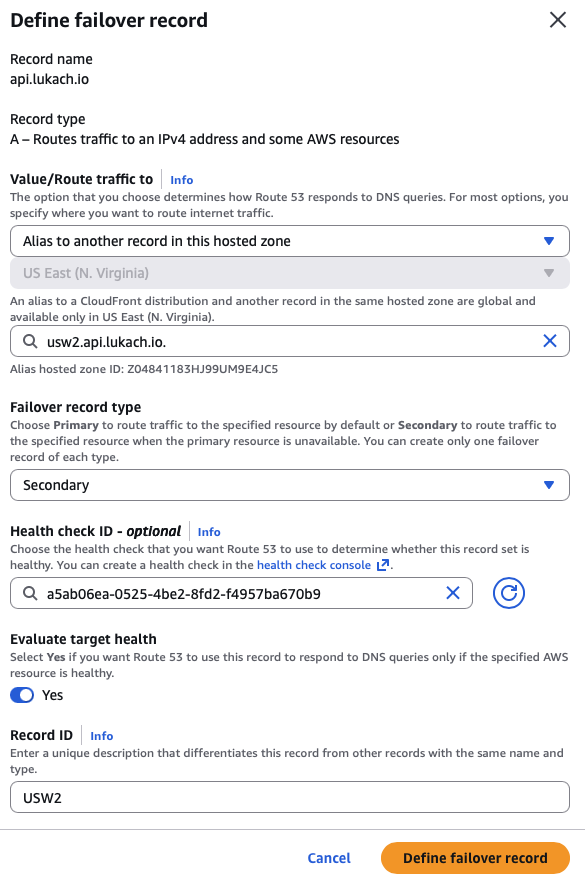 I always want everything to be Infrastructure as Code (IaC); however, that is not always possible! The Route53 for Failover routing policy has an issue with the Cloud Development Kit (CDK) constructs when deploying.